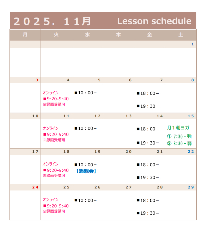 そんな方も、月に一度、生活習慣を整えるきっかけや、健康習慣を取り入れてみたい方。硬くなっている部分を軽くほぐし、むくみや疲れを流しましょう。巡りの良い身体は自律神経も整いやすく、リラックスしたい方にもおすすめ。身体が硬い方、ヨガが初めての方も安心して受けて頂ける優しい内容です。